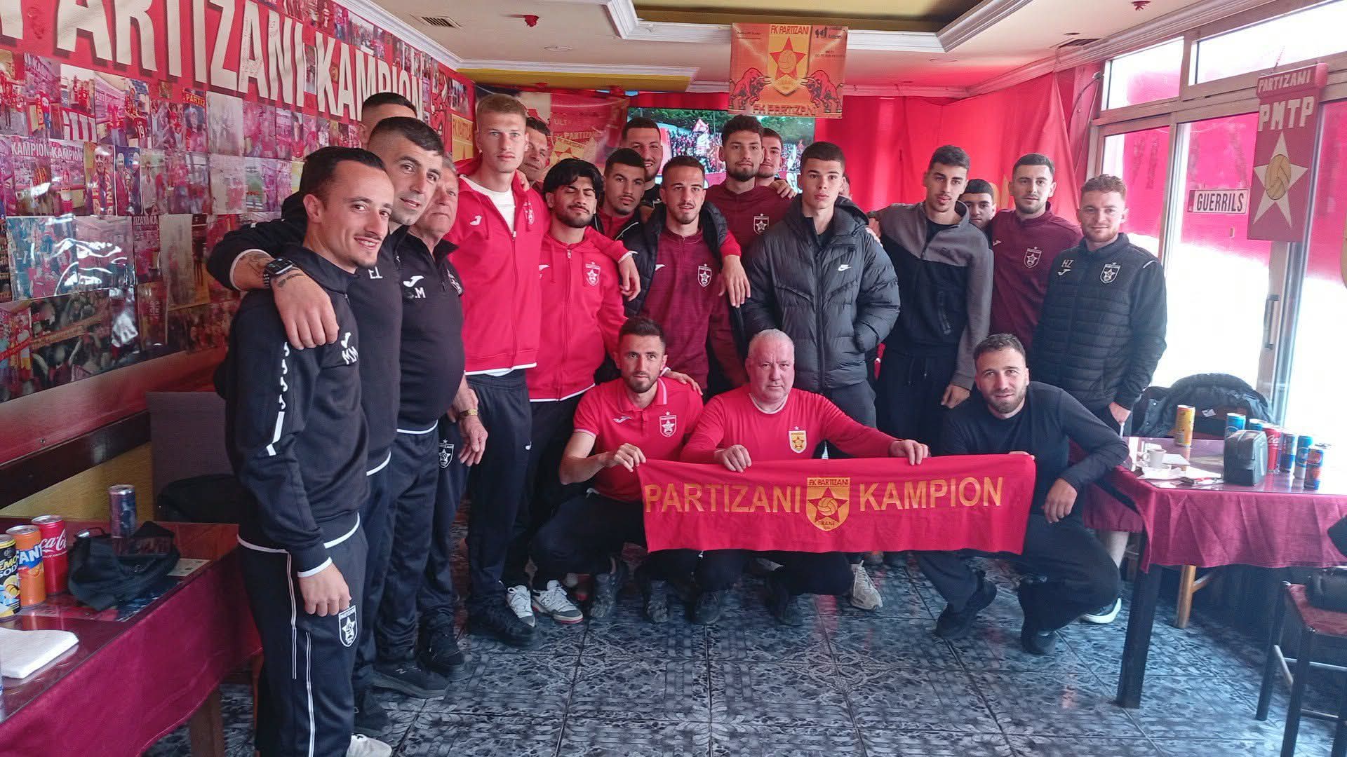 Para ndeshjes, skuadra e kuqe u ndal në fan clubin e njohur të Partizanit në Sarandë, ku u prit me shumë mikpritje nga tifozi dhe pronari i lokalit Ilir Bajrami, duke kaluar disa momente mes atmosferës dhe kujtimeve të veçanta.