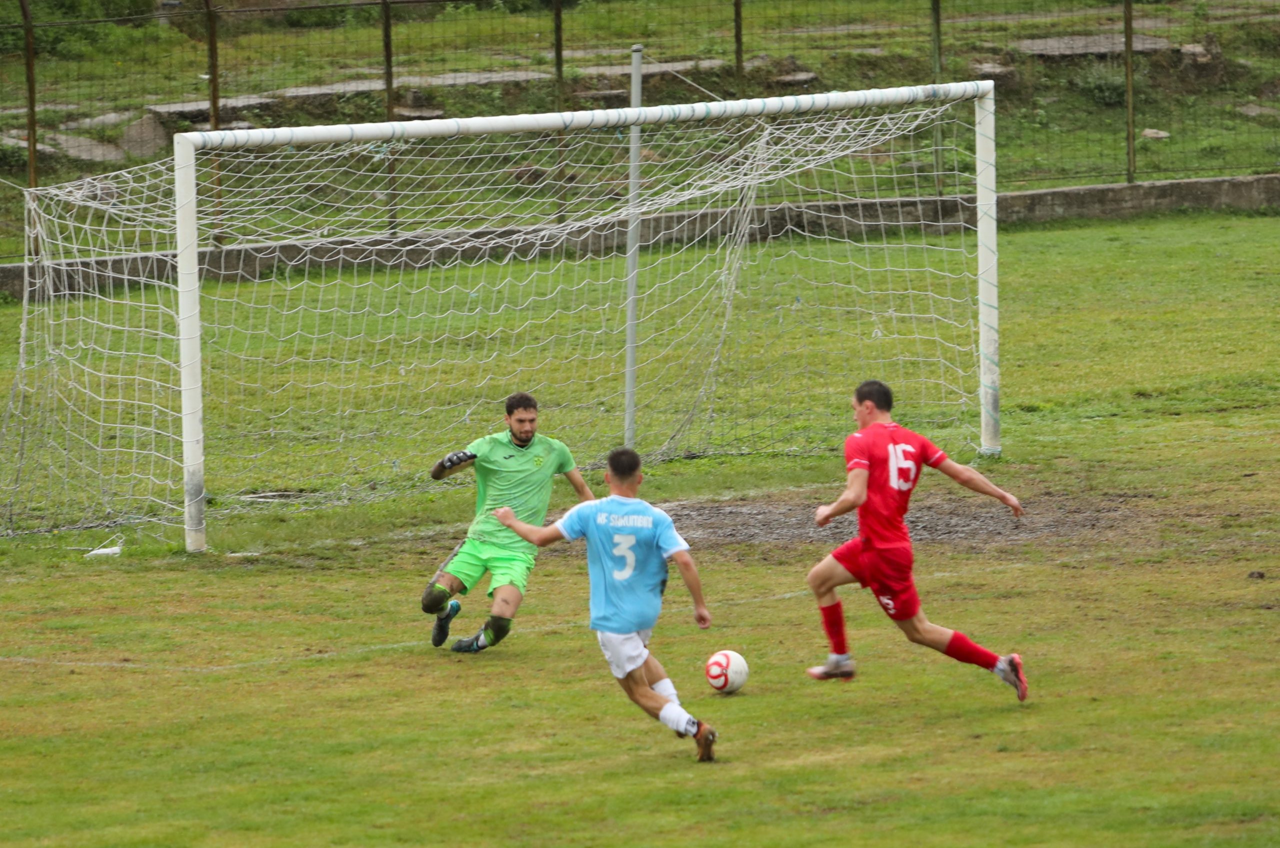 Vendasit e Shkumbinit morën inisiativën që në pjesën e parë, duke shënuar dy gola me dopietën e Doukaga në minutat 23 dhe 41. Megjithatë, dy minuta para fundit të pjesës së parë, Jurgen Bakalli shfrytëzoi një kundërsulm perfekt për të rikthyer shpresën dhe për të dërguar skuadrën e kuqe në dhomat e zhveshjes me rezultatin 2:1.